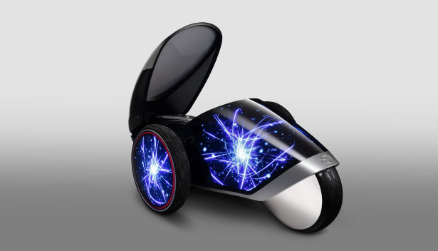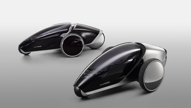 The FV2 features four wheels with two of the wheels arrayed like a motorcycle and two on the side sort of like training wheels. Toyota says that the vehicle can be driven while standing and drivers would change direction by shifting weight as you would on a motorcycle or something along the lines of a Segway transporter.