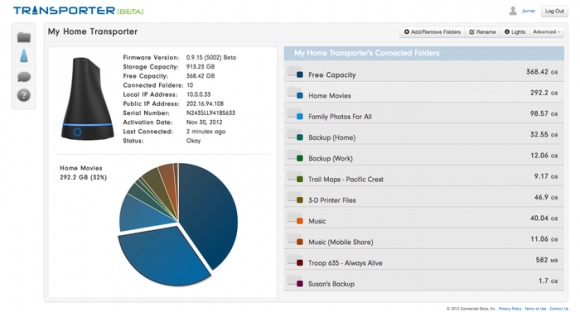 In that you've got shared folders between devices that sync over the web, this solution is very similar to the basic idea of services like DropBox. The big difference here is that your Transporter devices are offline – you wont have any remote servers owned by companies with recurring fees appearing here. You'll have the same files on each of your connected Transporter devices, edits and all – update a document at the office and get home to find that same document edited there.
