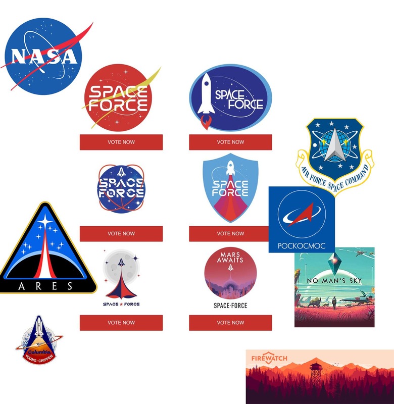 The Trump campaign wants people to vote for the new Space Force logo. The choices: pic.twitter.com/dqNy8pQ53L