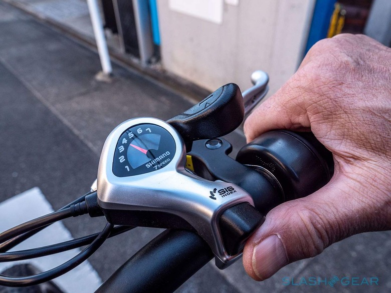 The other aspect of the e-bike is the speed itself, controlled via the 7-Speed Shimano Acera derailleur that also helps make short work of uphill treks. Switching between speeds was a pleasurable and smooth experience, lacking the usual jolt you'd expect when shifting gears.