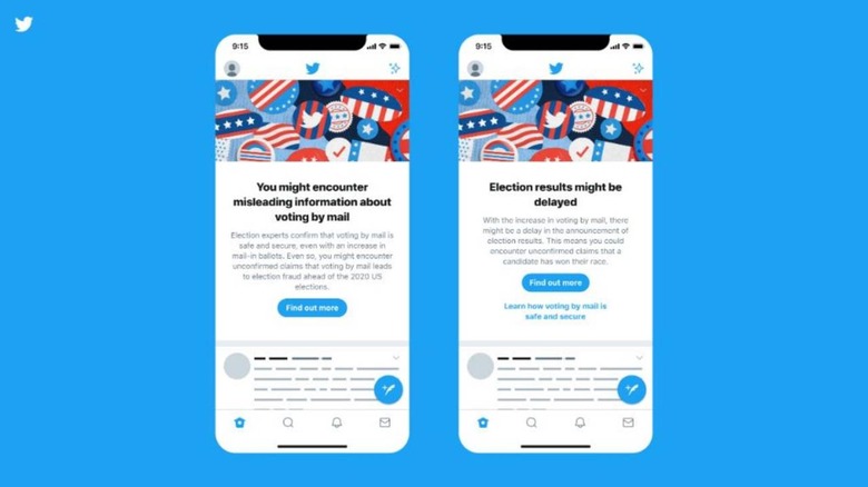 The other prompt reminds Twitter users that they may come across misleading news related to mail-in voting; the alert includes a link that users can click to get additional information about the topic. The prompts are showing up for users starting today, October 26, and they will remain until the election results finally arrive.