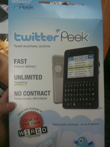 It looks as though Peek have used the same Peek Pronto hardware as for their email model, but deleted the email and SMS support in favor of an instant-delivery Twitter client. Peter Ha has apparently had a one-on-one session with the TwitterPeek's packaging (no word on whether there was a functioning device in there or not), which lends even more authenticity to the story.