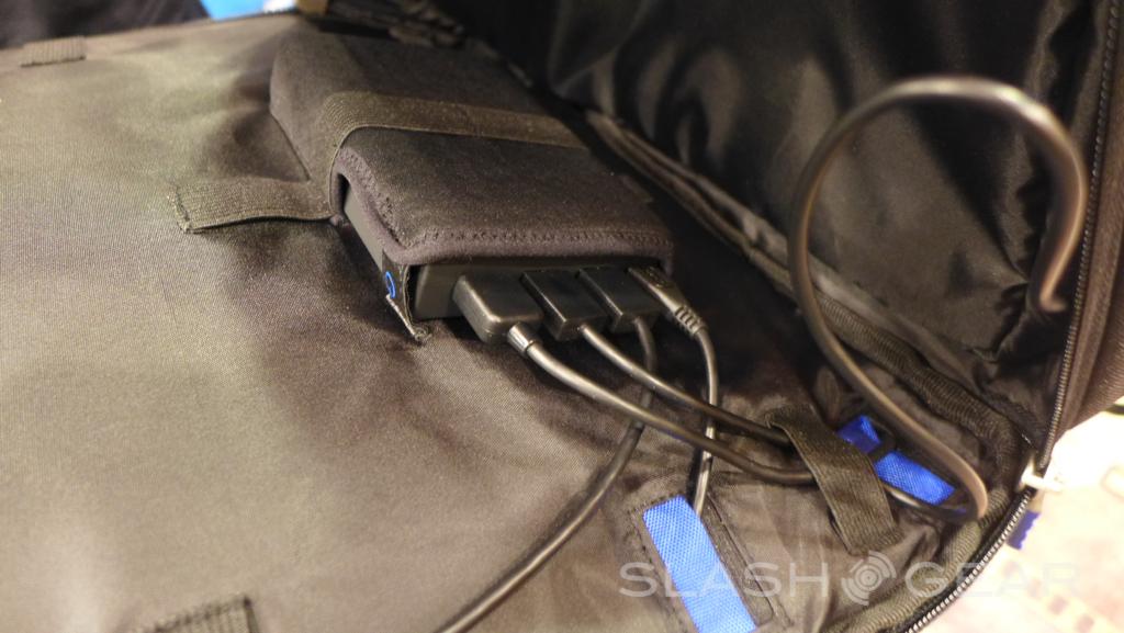 We've seen powered Backpacks before that pack internal batteries to charge our favorite smartphones, tablets, and more, but this is made to handle any and all situations. With nearly enough pockets to store your entire office, an awesome industrial design, and 3 USB cables to handle a wide array of devices you'll never be without juice.
