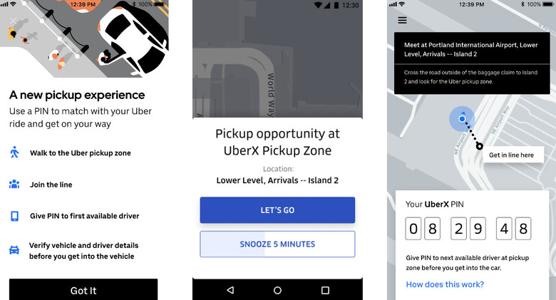 Uber pickups at high-volume destinations like airports can be a mess — many people amass into the pickup zone, but each is looking for the vehicle they were assigned, slowing the entire process down while increasing congestion. Uber's PIN-based system, which was developed back in 2016, addresses the issue by allowing riders to take the first available Uber car rather than seeking out a specifically assigned vehicle.
