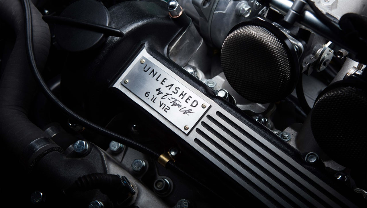 One of the key modifications to the Unleashed by E-Type UK sports car is a revised engine with displacement increased from the standard 5.3-liters to 6.1-liters. Originally, the V12 under the hood of the Jaguar featured carburetors, but Unleashed has custom fuel injection for improved reliability and performance.