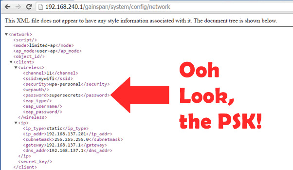 The problem with Ring is that its software was strangely designed to make it so easy to get the Wi-Fi network's credentials. The door mounting has a conspicuous orange button that turns Ring's Wi-Fi module into AP mode, which means that computers can connect to it like a hotspot. Once that's accomplished, however, visiting a simple URL will immediately display the Wi-Fi SSID as well as its password in plain text for anyone to see. And once those have been pilfered, hackers can easily get access to that Wi-Fi connection to do real damage.