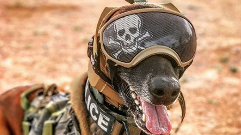 Key to the hoods are 'acoustic absorption materials' that block out unwanted sounds. As shown in the image above, the hoods can be used with other existing military gear for dogs, such as goggles. The same hoods could also be used with dogs working for police departments and federal law enforcement agencies.