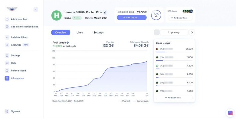 It's also possible to use the dashboard to pause or resume lines, and the interface can compare the current month with previous cycles to see just how much data is being used overall. Down the line, the carrier says, it plans to add automatic insights which will be able to make suggestions for how to manage data allowances and even recommend increasing or decreasing how much data you buy depending on forecast usage. Eventually you'll also be able to turn on auto-top-ups, which will add more data automatically if you reach a certain threshhold.