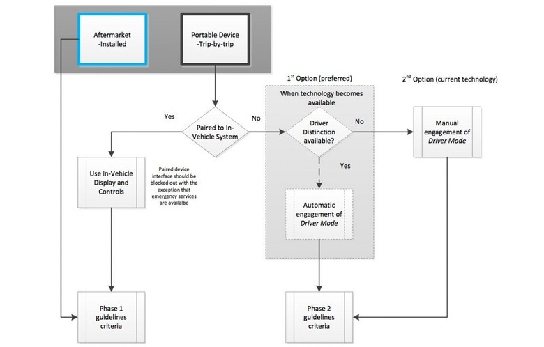 "NHTSA has learned that technologies to detect whether a driver or passenger is using a device have been developed but are currently being refined such that they can reliably detect whether the device user is the driver or a passenger and are not overly annoying and impractical," the agency says. As such, a manual switch would be permitted under the Phase 2 guidelines until such auto-recognition technology is deemed capable enough to figure out who was at the wheel and who was on the phone.