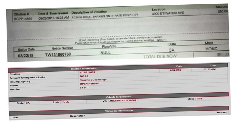 California works with a CPC, a citation processing company. Tartaro looked up his citation number using the CPC and paid his ticket. This is the key moment. It was at this moment that the CPC system was able to confirm that the license plate NULL belonged to Tartaro.