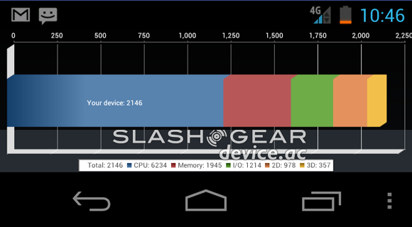 When your display is Super AMOLED HD with 720 x 1280 pixel resolution over 4.65 inches of screen, things like this are bound to happen. What you should be looking at in addition to the numbers above is a couple of games running on the device. First have a look at the jetski racing game Riptide GP: