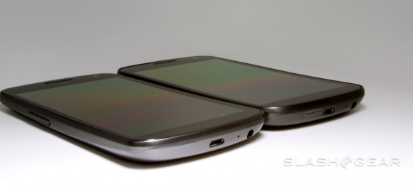In the Galaxy Nexus we've got Samsung's newest effort, and depending on who you're talking to, their greatest effort in a handset yet. You'll find benchmark tests winning out on Galaxy S II devices over the Nexus here, but no device on the market anywhere has such a brilliant display. Comparatively, you've got essentially the same device here in the Verizon version as you do in the international edition, it's just a tiny bit thicker — the difference is so small you'd have to hold them both to see the difference, basically. The materials are the same, the display is the same, the camera bits are all the same. There's also an increase in battery size, which depending on who you ask, you'll be needing down the road. Check the battery section of this review for more info in that regard.