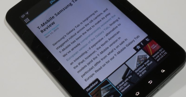 It's ironic but, for all Verizon's work on custom apps, it's the textured casing that makes the biggest difference to day to day use of their Galaxy Tab. A slightly more reassuring in-hand feel left us feeling far happier grabbing the Tab and using it for casual reading; of course, that's something which a silicon case could address on other versions of the slate, or indeed some self-adhesive pads as we applied.