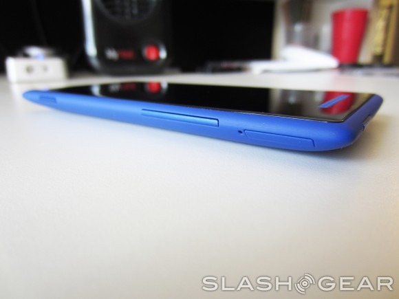 On the inside, there's the Qualcomm Snapdragon S4 chip with a dual-core Krait processor clocked at 1.5GHz — the same chip that's in the Samsung Galaxy S III and Nokia's Lumia 920. Partnered with the S4 are Adreno 225 graphics, and there's also 1GB of RAM and 16GB of internal storage (sorry, no microSD slot on this one either).