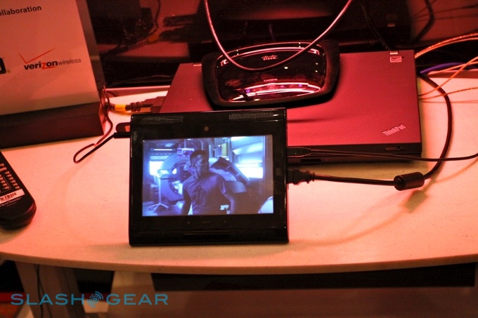 The resistive touchscreen obviously lacks some finesse in comparison to what we've come to expect from capacitive displays, but worked well nonetheless, and the onscreen QWERTY keyboard (the regular Android 'board) proved usable. Unlike the Vega, the Android 2.0 build on the Ultra is fully functional (ICD locked down the Vega to make it more family-friendly); that means you can install your own apps and even make voice calls; in effect it's a large-screened LTE Android smartphone. Verizon had a test LTE network up and running and, as you'd hope, streaming performance was impressive. HD internet video loaded and played without pause – ICD developed the media app themselves – and web browsing felt as fast as a desktop broadband connection. To be fair, since we were basically standing on top of the LTE transmitter a strong signal was a given, but we've high hopes for real-world performance.
