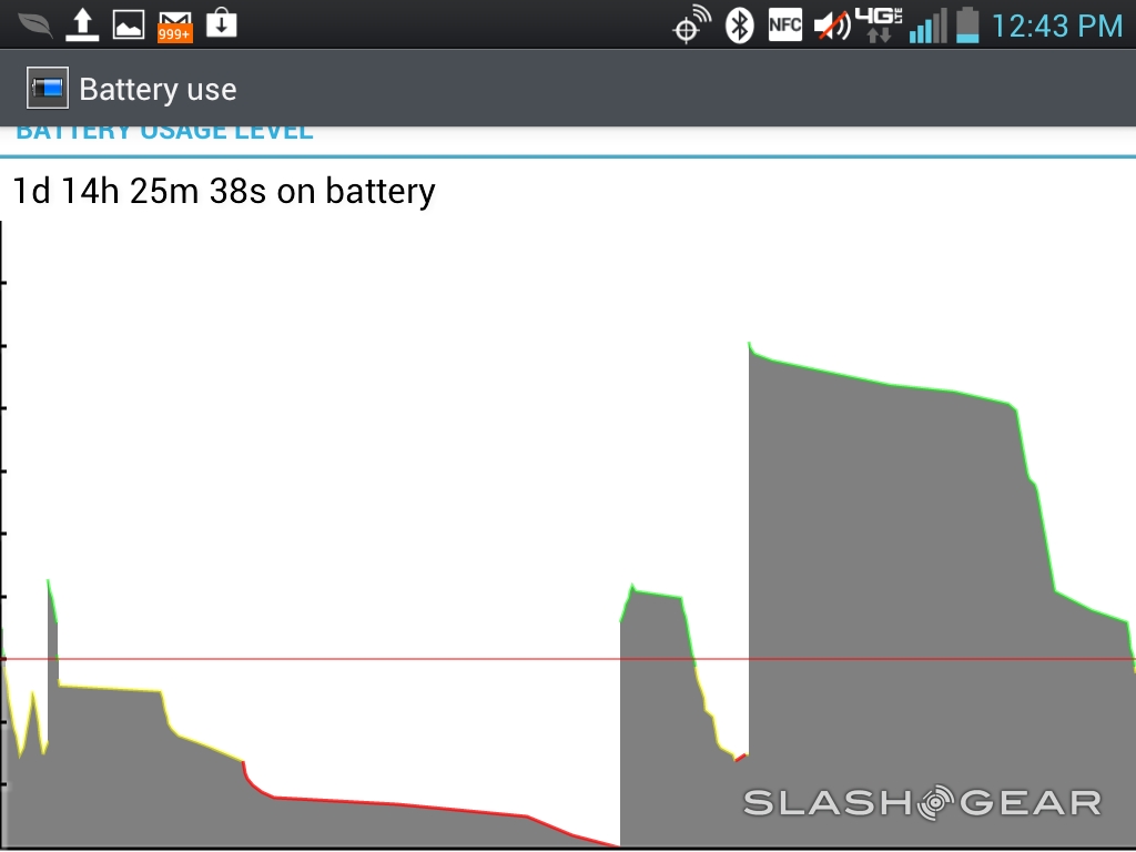 This device works with notoriously battery-hungry 4G LTE connectivity, which though it is a power-gobbler, has nothing on the ability of the Intuition's display to cut you down to size. Though the Snapdragon S3 processor under the hood doesn't quite have the same awesome standby power-saving abilities that the S4 does, we're still seeing some rather standard battery life action going on here.