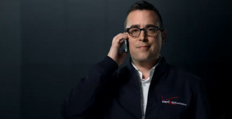 The phone stops at this point and begins to ring. A hand reaches out, unlocks it, pulls it up to its body's face, and ahhh! It's Verizon Man.