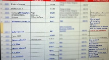 Other interesting bits to note from the leak is that the rumored handset designed for women, the HTC Bliss, is scheduled for a September 29 launch. There also looks to be a replacement for the LG Revolution in late October and what might possibly be the 4G LTE 8.9-inch Samsung Galaxy Tab in November.