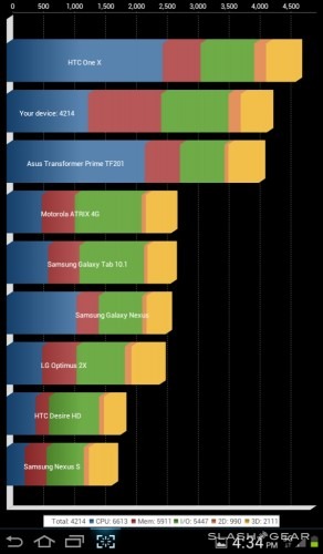 Tab 2 7.0 is Samsung Approved for Enterprise with 256-bit AES encryption and support for Microsoft's Exchange ActiveSync as well as support for VPNs and MDM solutions. Below you'll find a couple benchmark examples so you'll be able to compare to other devices in this same category. Another device you'll want to check out that's got slightly higher-grade specifications and a bit higher price is the Samsung Galaxy Tab 7.7 LTE – it's thinner, has a higher-definition display, and is slightly more powerful too.
