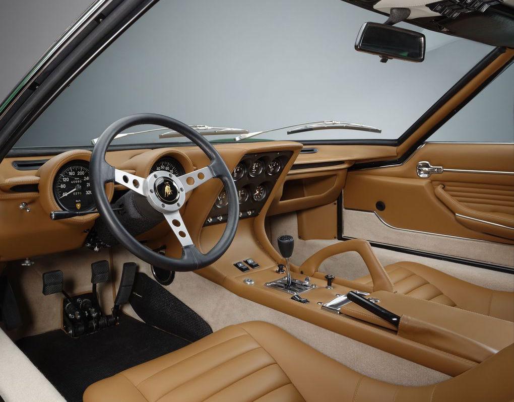 With chassis #4846, this historic Lamborghini has been returned to a near-original condition, with the metallic green Verde Metallizata paint and interior tan leather that it featured on the stage at Geneva in 1971, the same year the new Countach was shown. The process took a full year to complete, with PoloStorico inspecting each body panel, tearing down the engine and chassis, and comparing every component to original photos and archived documents.
