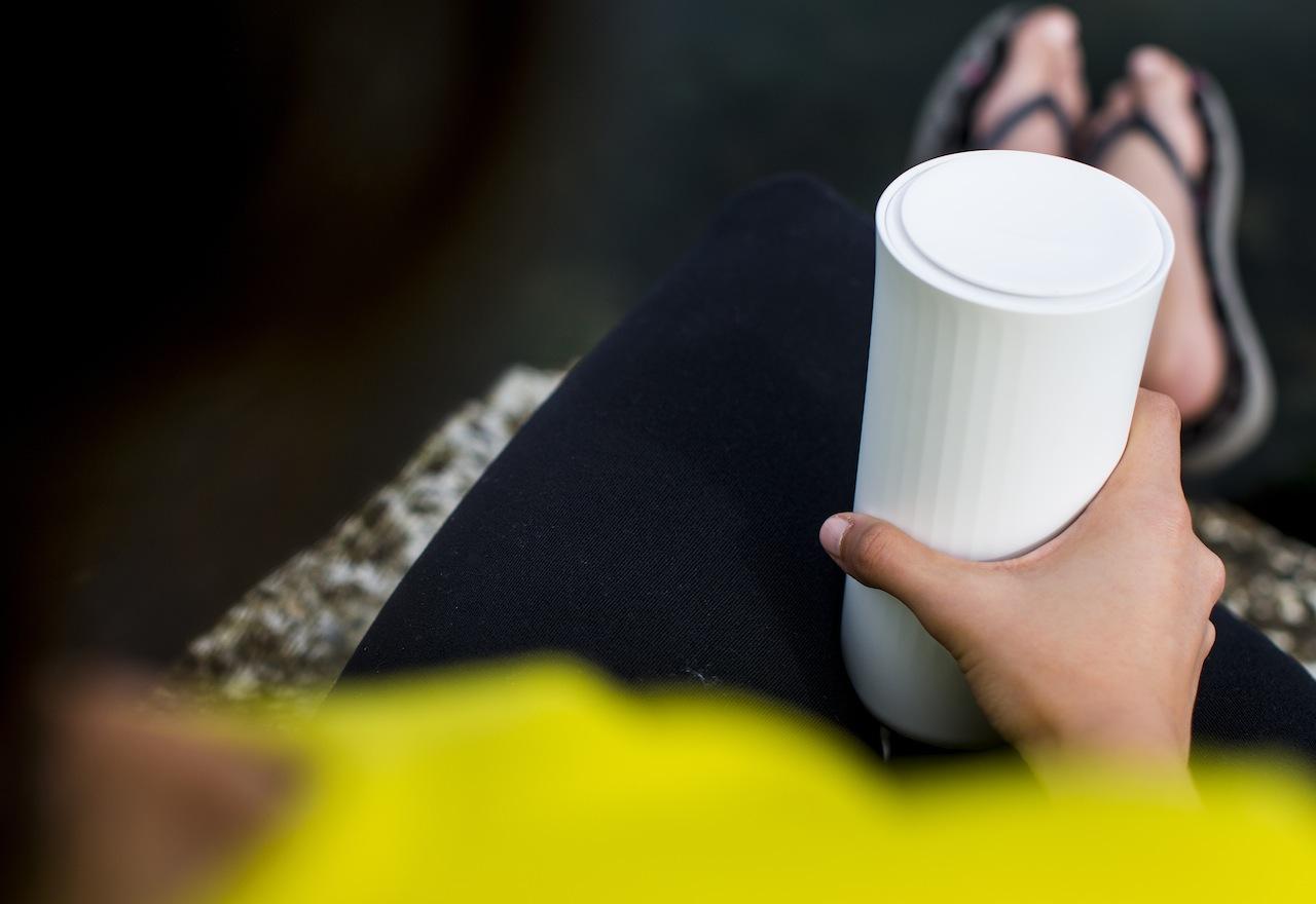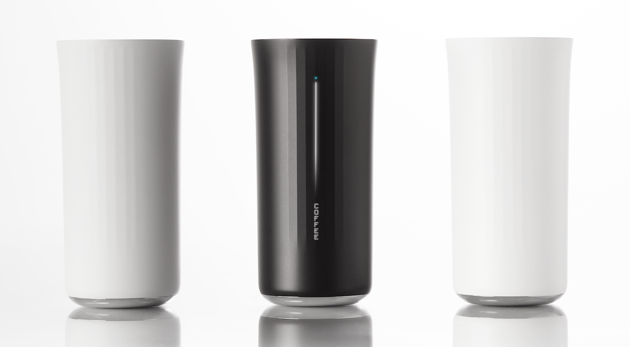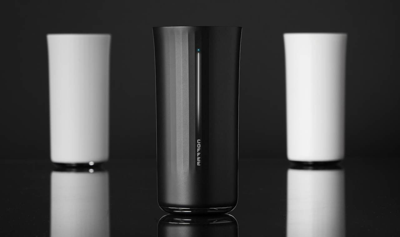 The 13oz cup itself comes in three different colors with a variety of highlight accents on the upper lip to choose between. Inside, there's a glass-like lining to avoid stains or flavor retention. Charging is done inductively through a companion coaster, with an hour of sitting in place adding up to a week's drink assessment.