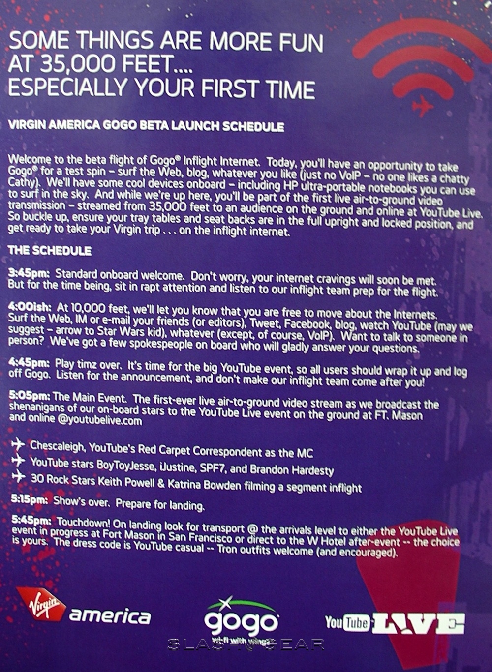 MMtech Online is taking to the skies later on today, for Virgin America's WiFi Launch Beta Flight. The first demonstration of the in-flight internet service, we'll be brushing aside the complementary rice crackers in favor of surfing the internet. Then, we'll be heading straight for the YouTube Live event, to bring you all the details.