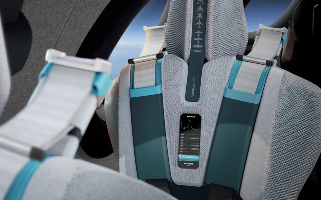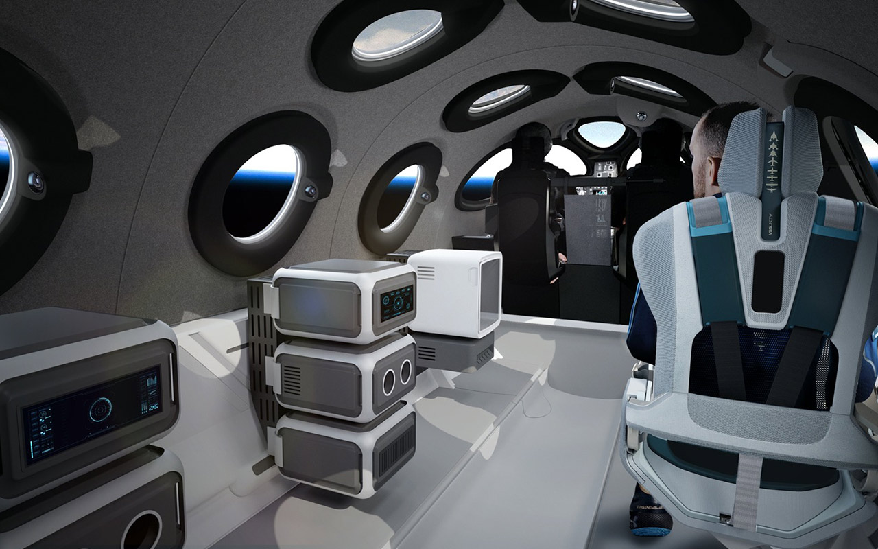 In the cabin, each reclining seat is individually size, made for each individual and space. These seats are tuned for G-force management and float zone volume. Each seat includes a personal seat back screen to connect individual astronauts to live flight data.