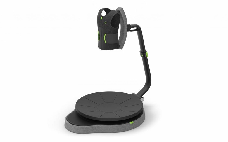 Omni One has a fairly distinctive look, with the dished deck below a suspended zip-up vest which holds the player in place. That's height-adjustable for different sizes of gamer. Virtuix is comparing it to Peloton, in fact, and borrowing that same model of upfront equipment purchase and then recurring subscription revenue, billing Omni One as Peloton for VR gamers.