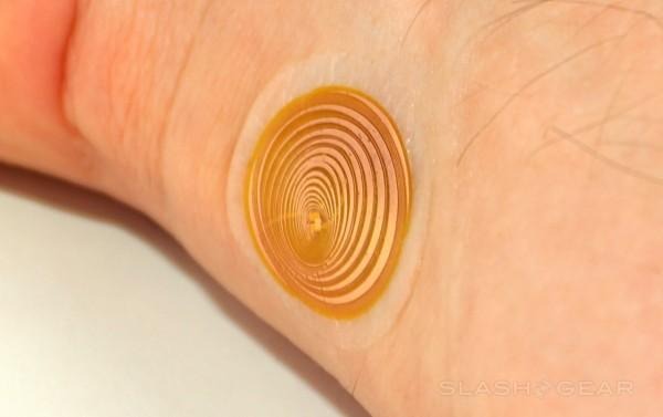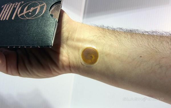 VivaLnk has created a piece of hardware that you can apply to your skin. The digital tattoo is akin to a temporary tattoo, attaching to your skin with an adhesive-backed transparent material that traps a coil of metallic components to your wrist.