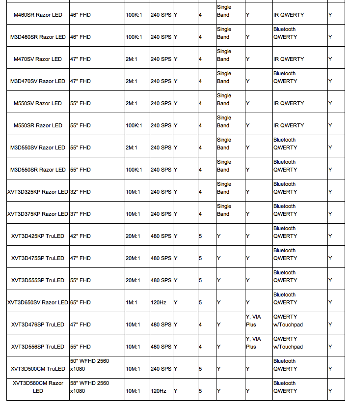 Most of the sets have Vizio VIA internet apps, but the XVT3D476SP and XVT3D556SP are each VIA Plus Google TV sets with Bluetooth QWERTY keyboards. Finally, the Cinema HDTVs come in at 50- and 58-inches, and confirm to 21:9 aspect ratio for black-bar-free movie watching. Vizio also has a massive 71-inch version of the Cinema HDTV for private showings. No word on pricing at this stage; more specs in the gallery below.