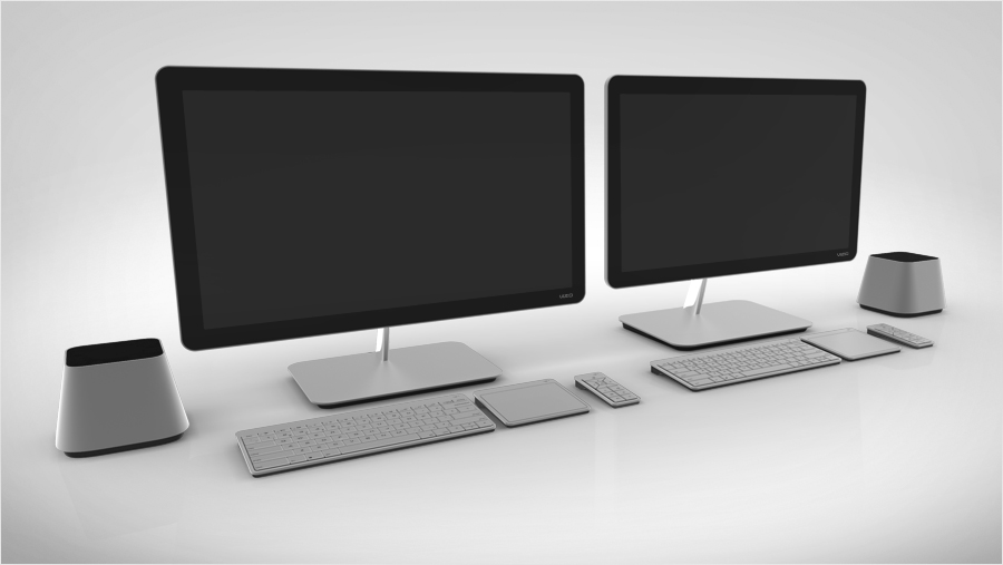 This is the first day that the folks at Vizio bring on their PC collection with both desktops and notebooks, having just been a television brand in the past. This first reveal includes first of all a set of two all-in-one computers, one with a 24-inch display at 1920 x 1080 pixel resolution, the other with a 27-inch display with 1920 x 1080 pixel resolution. Both computers work with 3rd Generation Intel Core (Ivy Bridge) processors, both have NVIDIA Kepler GeForce GPU units, and both work with lovely 2.1 surround sound.