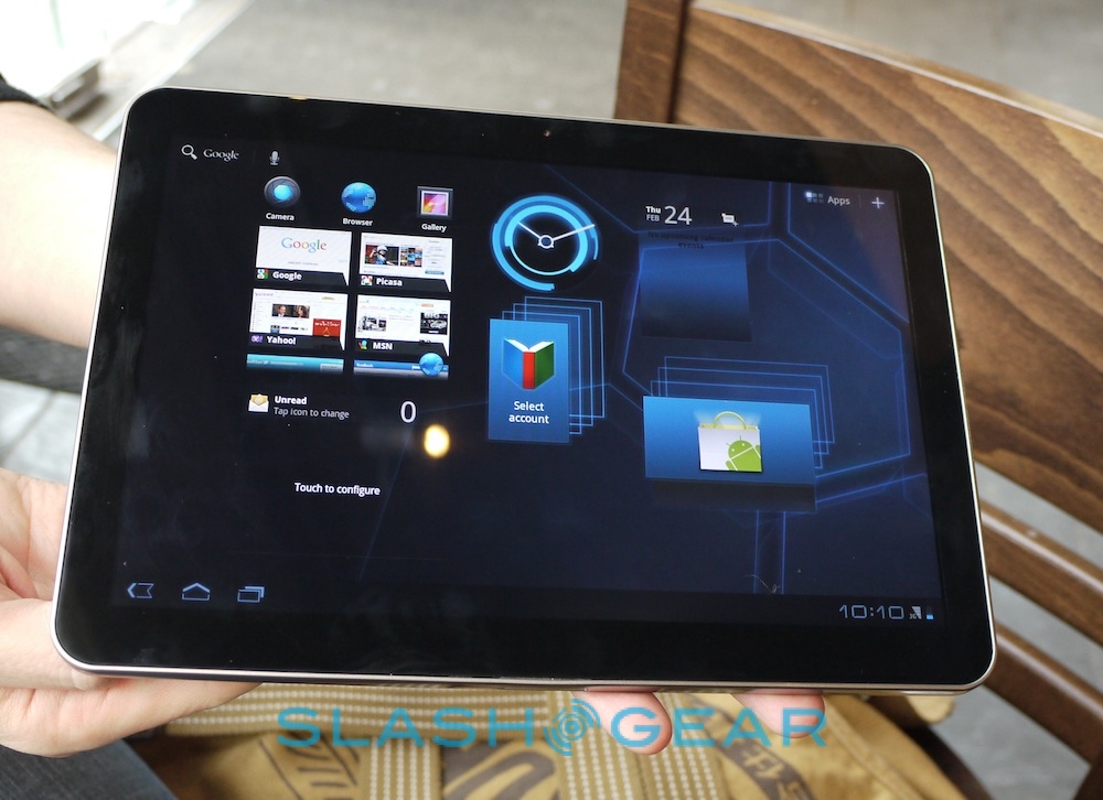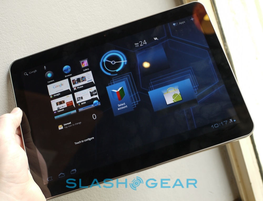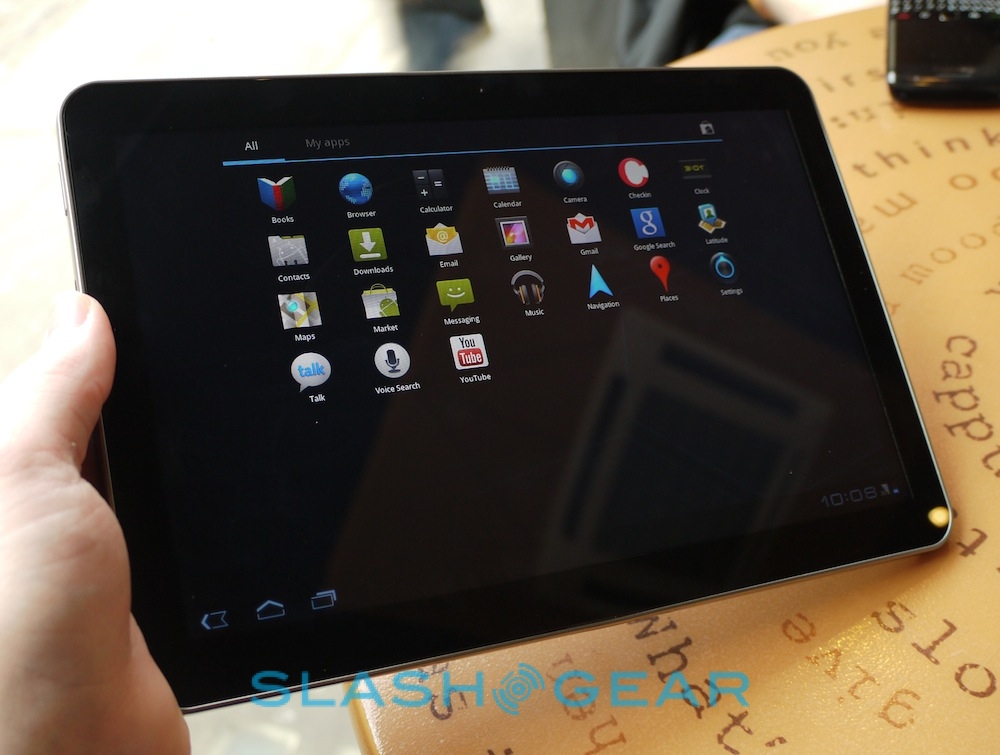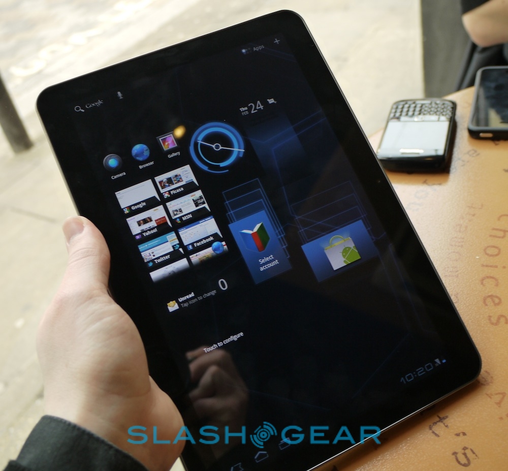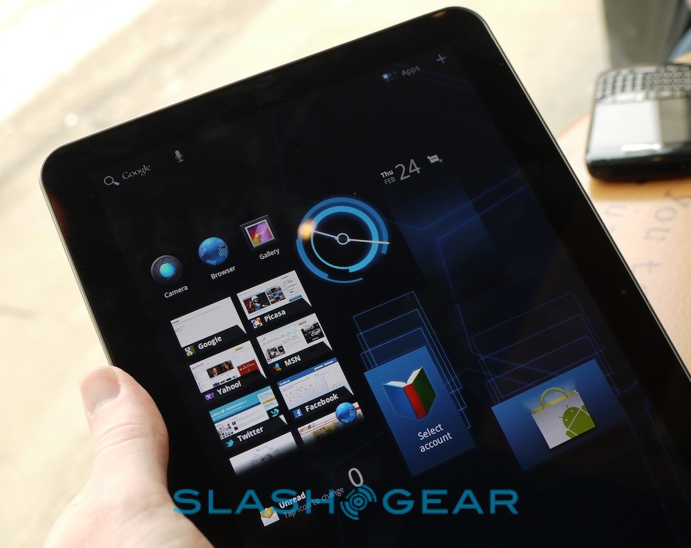 Otherwise, the speedy dual-core 1GHz processor means things run smoothly and slickly, and missing HDMI connector aside it seems a solid alternative to the XOOM. What we're perhaps most excited about is being able to film in HD using the 8-megapixel camera, edit clips on-device using Google's Movie Studio app for Honeycomb, and then upload them straight from the device. We'll save our final judgement until review units are available, so until then check out our video demo from MWC and our hands-on gallery below!