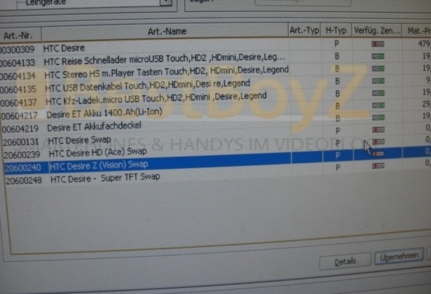 According to Vodafone Germany's systems, HTC's latest Android smartphones may be fast approaching. German site BestBoyz acquired screenshots of the database, which seemignly show the HTC Desire HD (aka the HTC Ace) and the HTC Desire Z (aka the HTC Vision) along with the Super LCD version of the original HTC Desire.