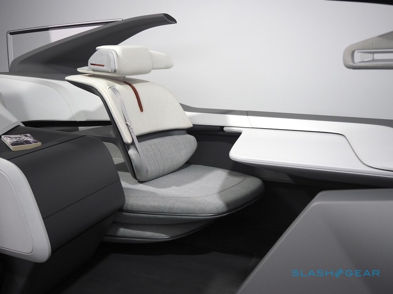 Similarly, inside the vehicle there's an acknowledgment that current safety technology may need an upgrade to reflect how driverless vehicles are used. Most notably, Volvo has designed a new safety blanket. That implements a special restraining system, similar to how a three-point safety belt operates, but that can be used even if people are lying down and sleeping.