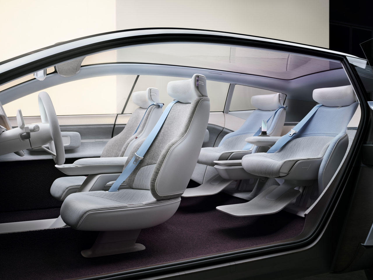 The concept has the floor and lower doors covered with carpet made of 100 percent wool. Seat cushions and surfaces that people touch on the doors are made using an environmentally responsible material Volvo Cars created called Tencel. The seatbacks and headrests, and part of the steering wheel use a Volvo material called Nordico. That material is soft and manufactured using bio-based and recycled ingredients from sustainable forests in Sweden and Finland. It says the material has a 74 percent lower CO2 footprint than leather.