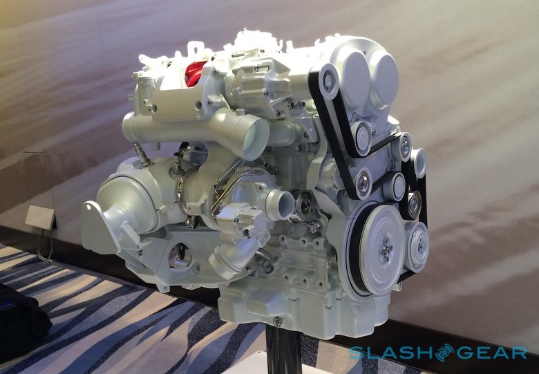 It's also plug-and-play ready for electrification, Volvo's Jan-Erik Larsson, head of the powertrain program, told us. A few swapped out components and Drive-E can be hooked up to a hybrid or full plug-in hybrid electric system, with the reduction in weight and bulk meaning more room for batteries and more advanced front suspension. First to demonstrate that will be a new XC90 crossover later in 2014, using a plug-in hybrid Drive-E system.