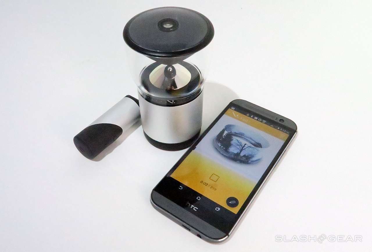 The V.360 camera presents a fairly remarkable media-capturing proposition: the ability to capture panoramic (360-degree) videos or photographs with one tap. No stitching, no multiple-shot photography necessary. This system uses a mirror, instead, as well as a 4K/16 megapixel image sensor. You're using a fixed f/3.0 aperture here and you've got the ability to capture up to 6480 x 1080 HD video at 30FPS or up to 7-megapixel photos (that's 6480 x 1080 as well). What we're doing in this initial review is checking image and video quality – we'll be getting more hardcore in the near future.