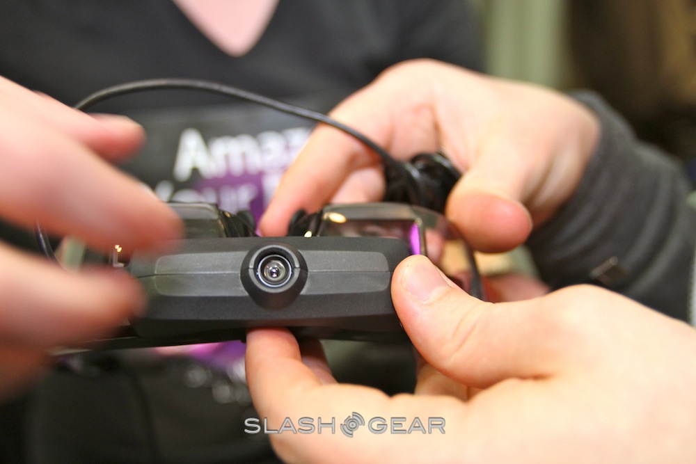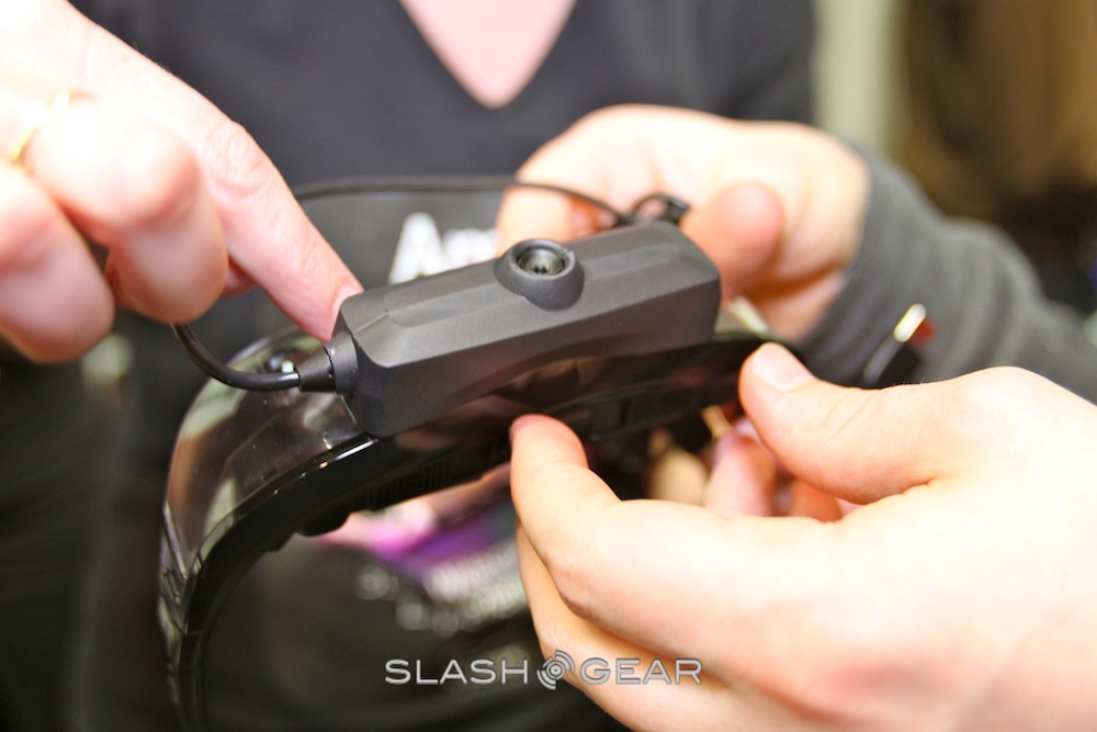 Those displays mimic a 16:9 aspect 60-inch display viewed from 10 feet away, but it's the camera and sensors that make it particularly special. As well as tracking 6-degrees of freedom with the same plug-in motion sensor as offered for the Wrap 1200, the STAR set has a front-facing 1080p HD camcorder. The camera is removable, with a pair of screws underneath, allowing you to use the perhaps more discrete camera integrated into your smartphone instead.