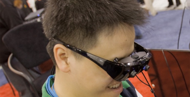 The system basically incorporates a set of Vuzix's WRAP 920 eyewear while the two cameras together create a 1504 x 480 image that can be viewed in 3D. A motion-sensor tracks movement – including exact X/Y/Z position and roll/pitch/yaw – and moves the on-screen display according to your head movement.