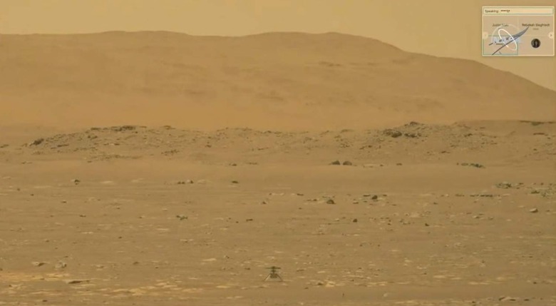 Today's flight time wasn't picked by chance. The JPL team selected it because of signs there would be the "optimal energy and flight conditions," NASA says, for the solar-powered helicopter. That's vital, given Mars' comparatively thin atmosphere presents a challenge to the two 4-foot-wide rotor blades.