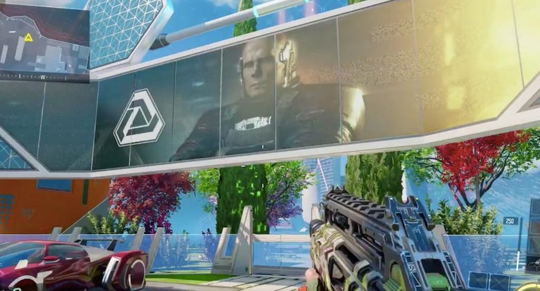 Those playing on the Black Ops III version of the map, called Nuk3town, will now see an ominous spaceship floating above the environment, as well as the bald guy's threatening message playing on a large billboard-like display.