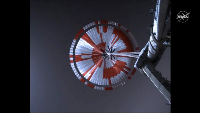 The landing was never just going to be a matter of turning the spacecraft around and depositing Perseverance on Martian soil. First came extreme deceleration, the spacecraft using Mars' atmosphere to shed huge amounts of speed. A vast parachute slowed Perseverance further, to the point where the casing could be released.
