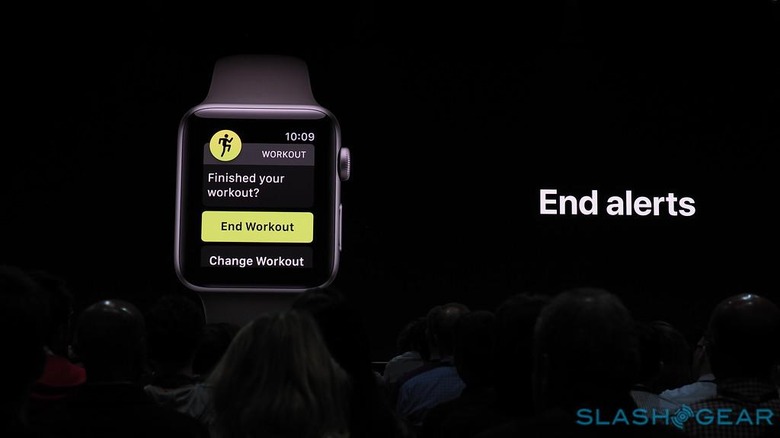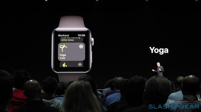 The yoga workout feature primarily tracks the user's heart rate, but the hiking workout is more robust, including metrics for things like elevations and pace. Other features include automatic workout detection — start working out and the Apple Watch will push out an alert saying, "It looks like you're working out."