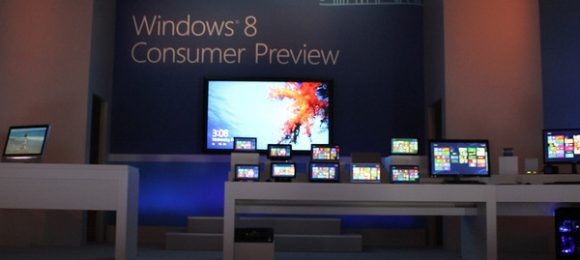We're currently sitting comfortable at Microsoft's Windows 8 Consumer Preview event and will be checking out what Microsoft has to offer the public in just a few short minutes. What we're seeing thus far is a collection of giant screens and tiny screens, everything from tablets to an HDTV sitting up center stage. We've already seen a bit of Windows 8 in the many early release versions of the software, now it's time to get down to personal business.
