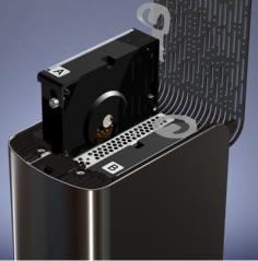 Inside a RAID 1 setup takes care of all the mirroring, with users able to treat the drive as they would any other; out of the box, half of the total capacity is taken up with backup (i.e. you get 500GB of usable storage on the 1TB system). Alternatively a RAID 0 (striped) configuration is possible, which gets you the full capacity but no redundancy.