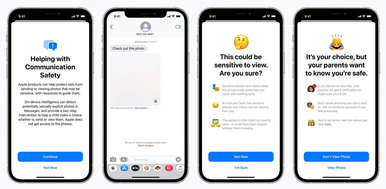 Rather than displaying them in the chat interface, the image will be blanked out by default with a warning that "this may be sensitive." The image analysis processing takes place on the device itself, Apple pointed out, as a nod to individual privacy. Still, while protecting children is acknowledged as being a good thing, not everyone is impressed with how Apple is electing to do it.