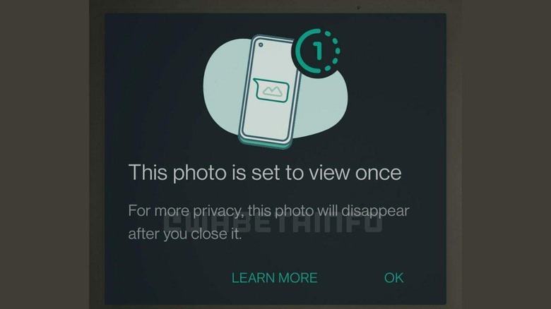 WhatsApp's View Once feature is rolling out to beta testers on Android first. One other caveat is that even if the recipient doesn't have the feature yet, the View Once photo or video will still self-destruct for them once they've seen it.
