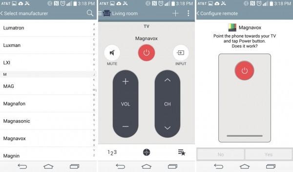 LG's app is called Quick Remote. This app is also extremely simple to work with. As you'll see in the list in screenshots here, you'll have a list of possible TV set brands that includes the well-known and the extremely obscure. Like most IR-blaster apps built-in with major brands like LG, you'll also have the potential to control your stereo or other infra-red controllable devices.