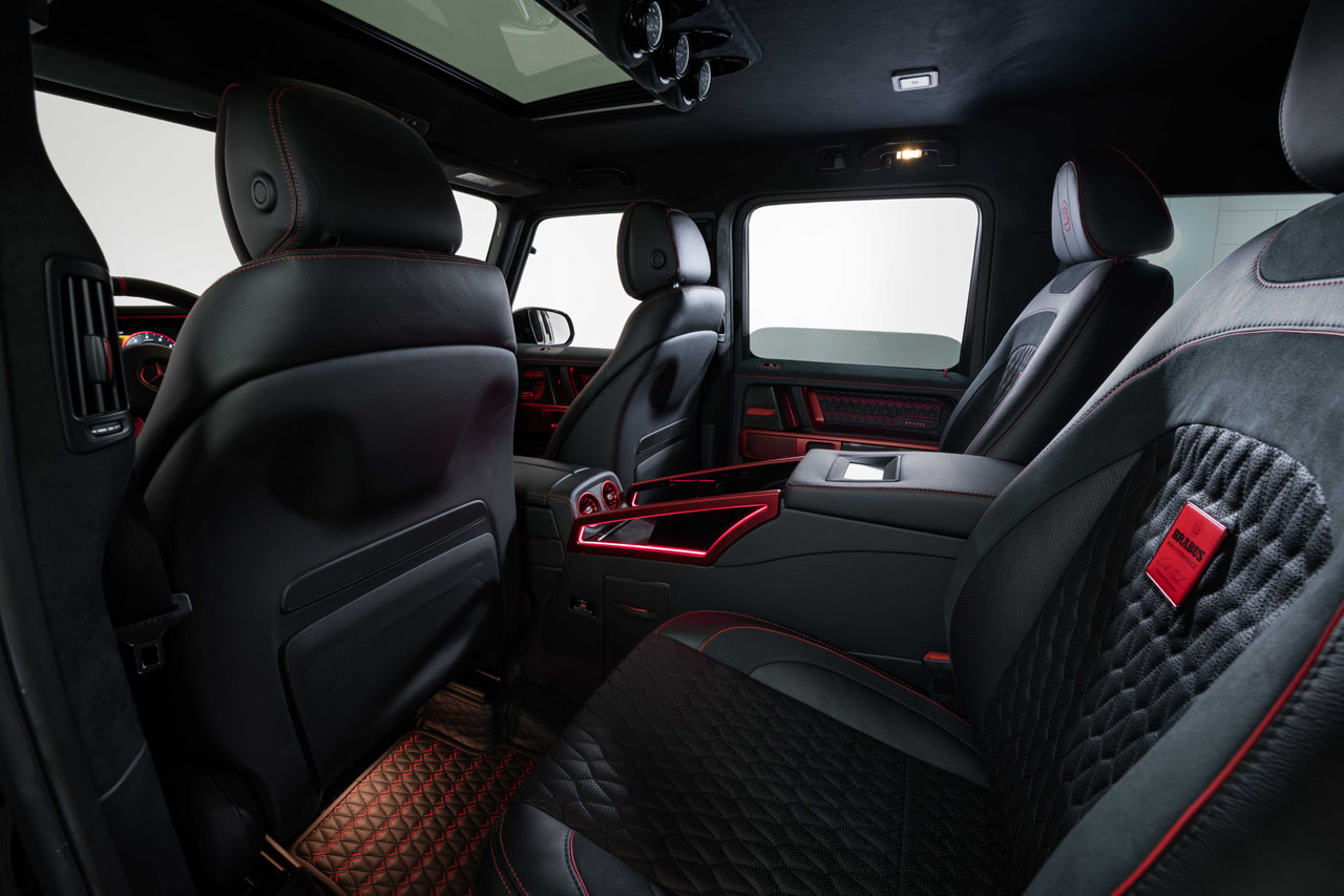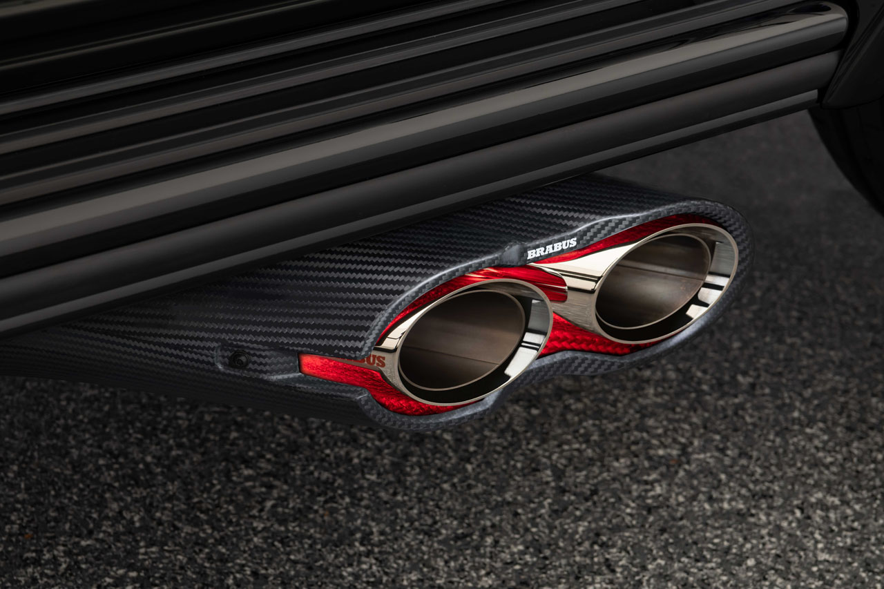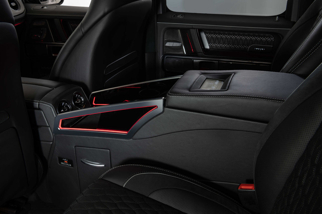 Even the tailpipes are wrapped in a carbon fiber finisher. Inside the Brabus 900 Rocket Edition is an individual Brabus Masterpiece interior with an exclusive single seat system. The vehicle is designed to carry four passengers, with each passenger getting a bucket seat with a console between the front and rear passengers. Everywhere you look inside the vehicle, you'll find carbon fiber and quilted leather. It's quite attractive and presumably quite expensive. Pricing is unmentioned, but Brabus has confirmed it will produce only 25 units for the entire world. The stock Mercedes G 63 the Brabus is based on starts at over $150,000.