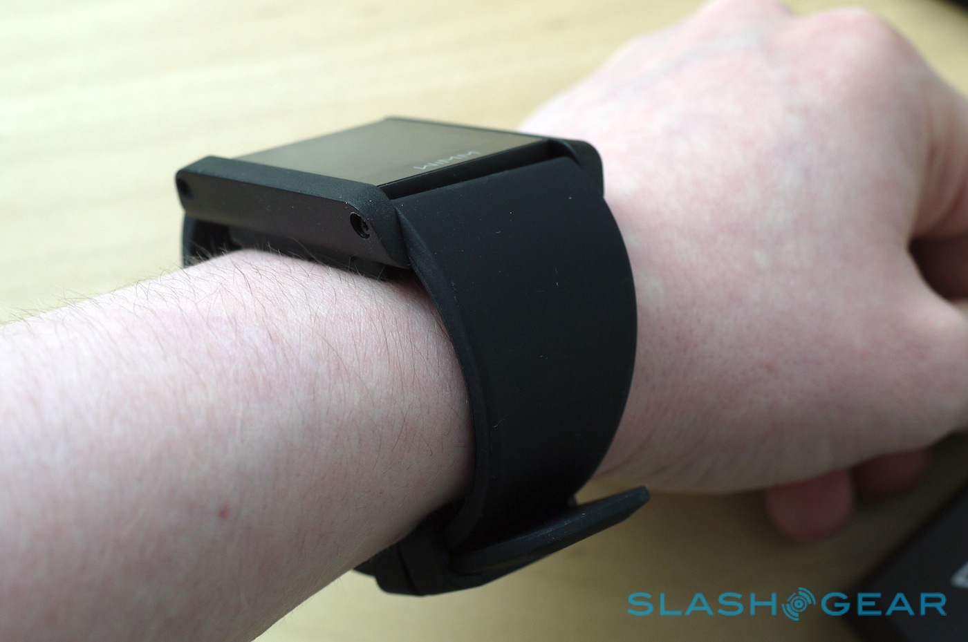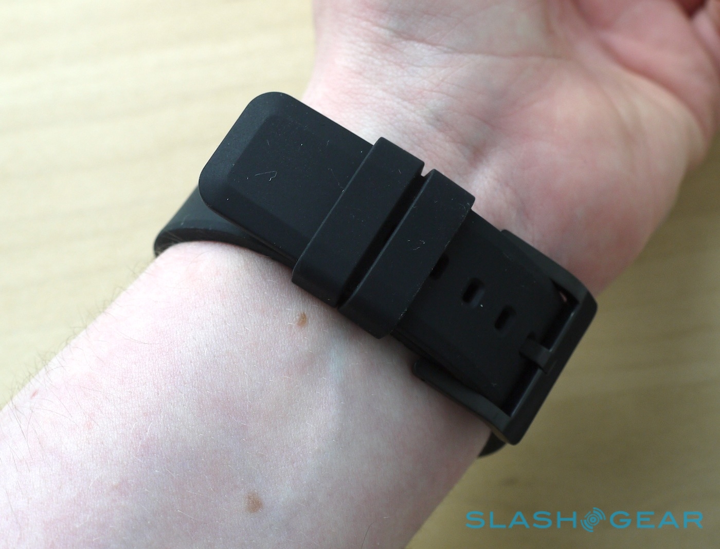 WIMM also includes a microUSB cable, a USB power supply and a rubberized watch strap. The latter – which has a frame into which the WIMM One slots – is a chunky, oversized thing, bulky on the wrist and hardly shows the smart watch off at its best. WIMM has plans for alternative options, like lanyards, clips and third-party watch straps, but for the moment this is your only option.